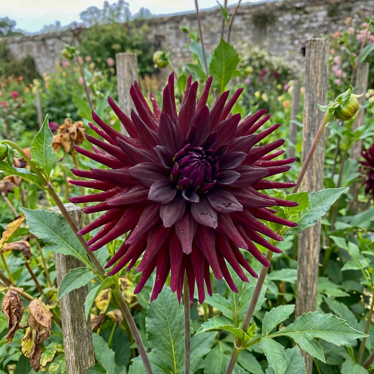 Dahlia 'Nuit d’Eté' brings spiky cactus blooms in deep red-purple tones to summer borders and cutting gardens, with bold flowerheads held on sturdy stems. Whether planted in drifts or dotted through mixed beds, the blooms add instant impact and keep coming through the warm months.